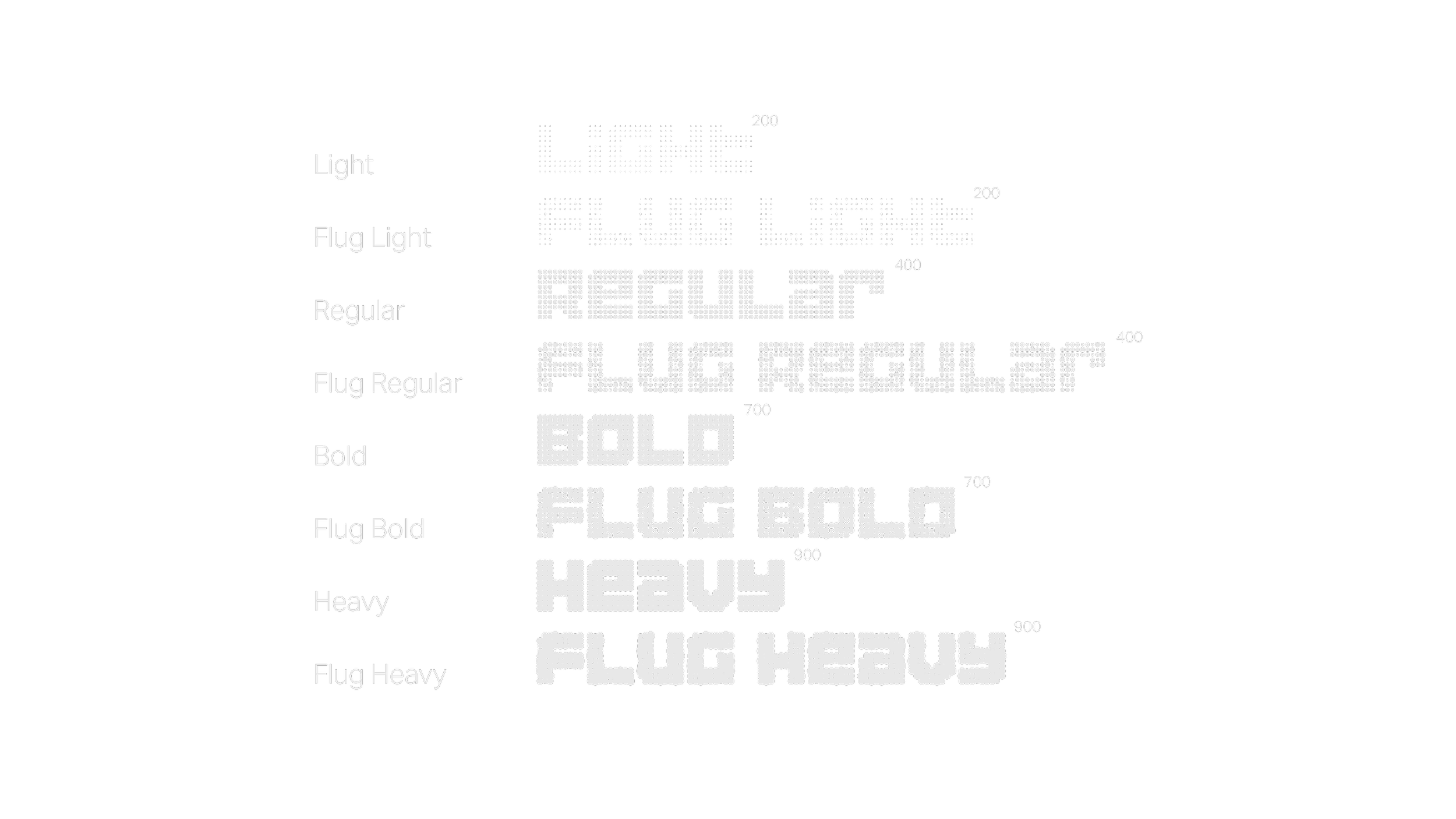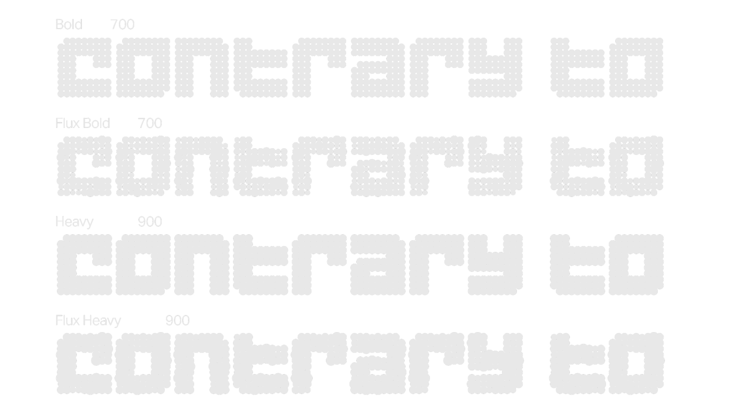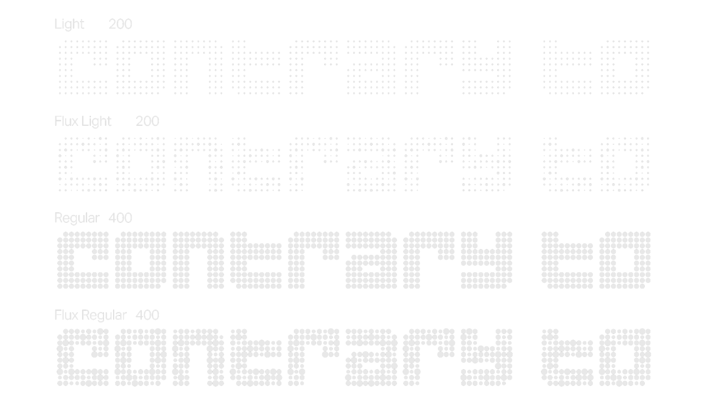 Its main feature and most special characteristic is the innovative Flux axis in the Variable Font versions. This allows precise control over the "brightness" and variation in dot or segment intensity, mimicking the flickering, glowing lights of old electronic displays. Combined with the Weight axis, designers can animate text to create sparkling, glowing, or chromatic effects—perfect for eye-catching motion graphics, digital signage, or animated titles. The family offers Solid and Open styles across multiple widths (from XTall to XXWide), numerous static weights, and stylistic alternates (Square and Mono) for added versatility. With support for over 220 languages and minimal kerning for a chunky, scoreboard-like rhythm, it excels in large-scale use.